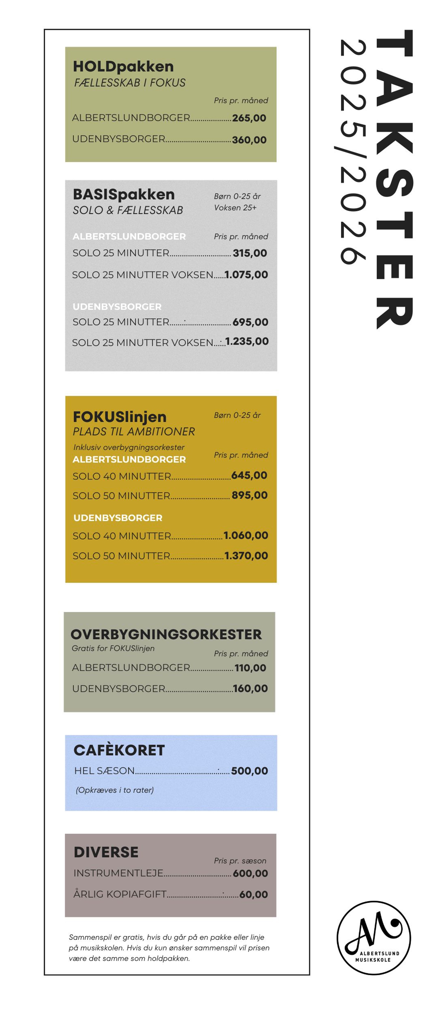 Oversigt over musikskolens takster for Albertslund- og udenbysborgere