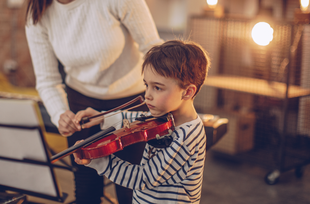 Violinens lyd er varm og smuk og bruges i næsten alle kulturer og genrer. Violinen er et gruppeinstrument, og derfor tilbyder vi fællesaktiviteter fra dag ét - herunder sammenspil og hørelære.