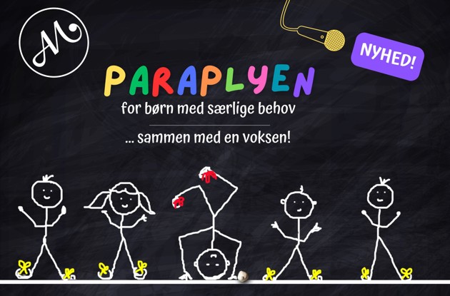 Albertslund Musikskole ønsker at række ud til børn med særlige behov – gennem et nyt musikværksted: Paraplyen. Holdet er for børn med særlige behov, der har brug for tryghed og nærvær i fritidsaktiviteter: Måske har I tidligere oplevet at komme skævt ind på fritidstilbud på grund af for store hold, for meget uro eller på grund af struktur, som ikke var helt tydelig for jer. Under Paraplyen er alle velkomne, uanset om man har en god eller dårlig dag - en diagnose eller ej. På holdet deltager børn med deres mor, far eller en anden nær voksen, så I er sammen om musikken!